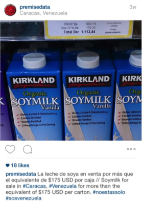 A carton of soy milk in Caracas, Venezuela, costs $175.  Source.